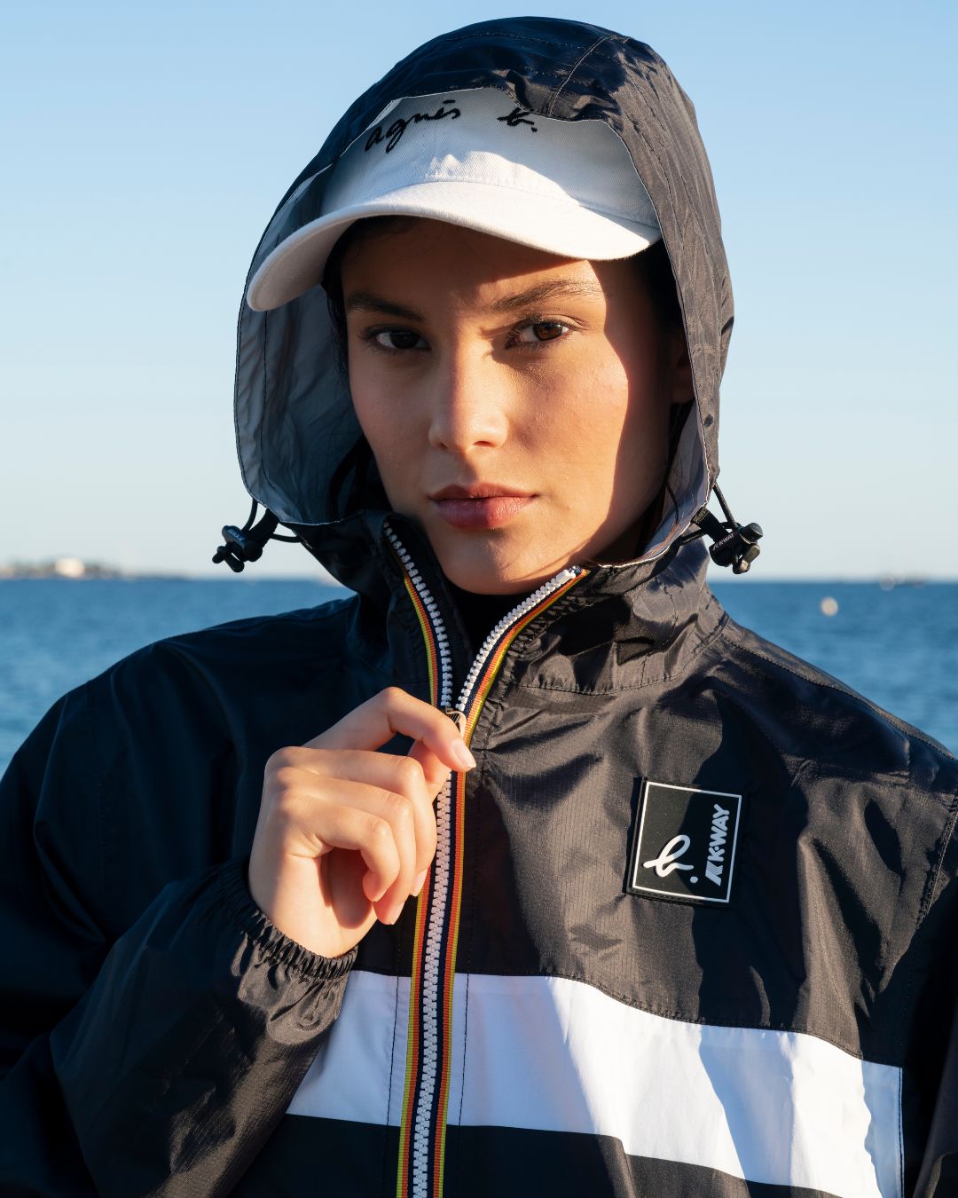 Classique, fonctionnel et coloré, caractérisé par son iconique zip tricolore, le coupe-vent K-Way® Le Vrai s'unit à la signature d'agnès b. Ces modèles au design exclusif sont disponibles en noir et blanc avec le logo b. K-WAY.