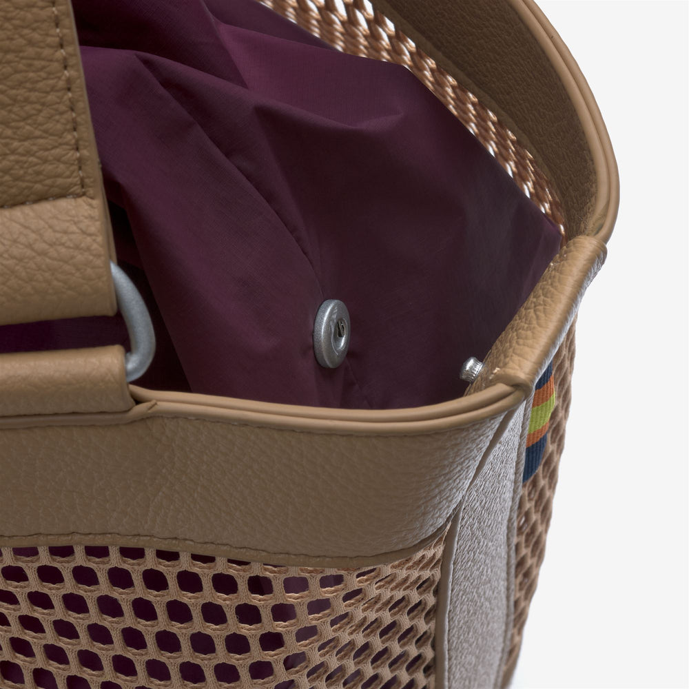 Hollis Small est un sac seau fabriqué en matériau synthétique à texture cuir, avec un panneau latéral en mesh et un sac intérieur en nylon amovible avec fermeture à cordon. Conçu pour une polyvalence quotidienne, il est équipé de poignées robustes pour un port confortable.