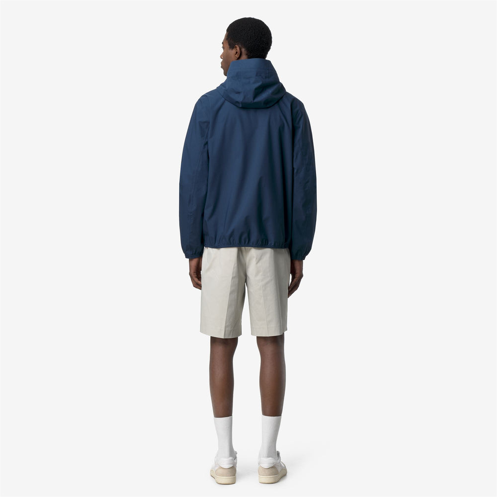 Jack est une veste imperméable parfaite pour la mi-saison, avec une coupe ajustée.        Elle est fabriquée en tissu recyclé et extensible qui permet une facilité de mouvement tout en offrant une protection contre le vent et la pluie, avec une résistance à l'eau jusqu'à        5 000 mm. L'intérieur est doublé d'une membrane isolante ornée d'un lettrage K-Way argenté imprimé sur toute la surface. Des détails fonctionnels tels que des poches latérales zippées, une capuche enveloppante, des poignets et des ourlets avec élastiques, garantissent un ajustement sûr et confortable.