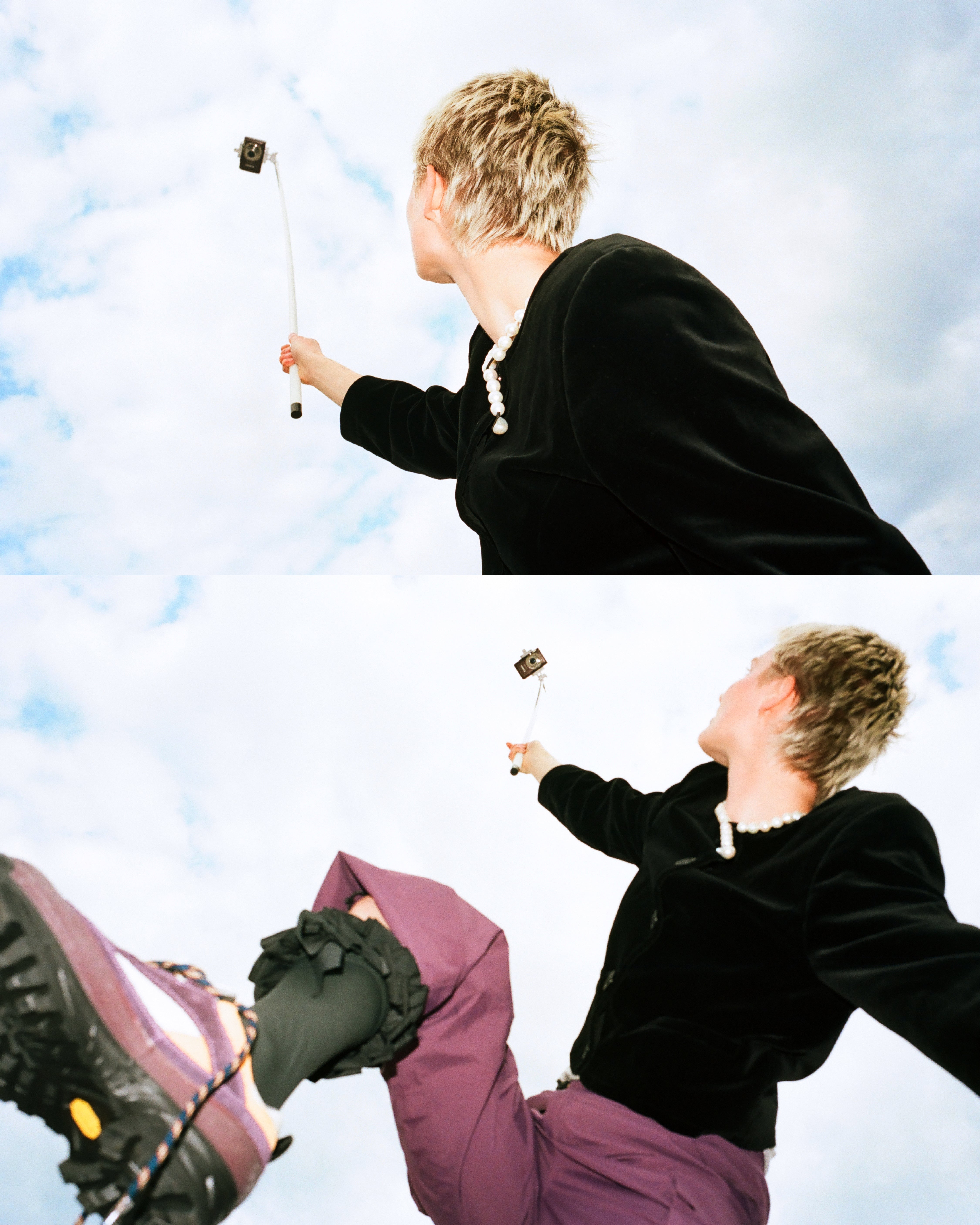 La collection comprend quatre essentiels polyvalents et unisexes : une paire de chaussure, une veste de